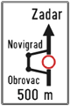 Predznak za preusmjeravanje prometa na cesti s odvojenim kolničkim trakama